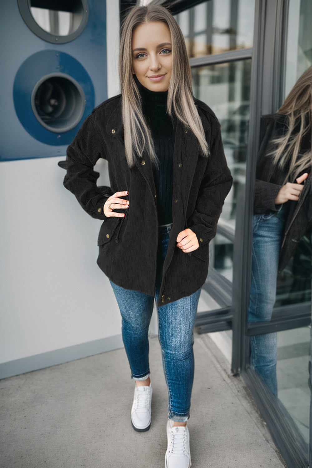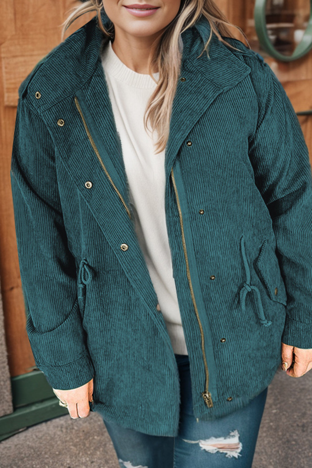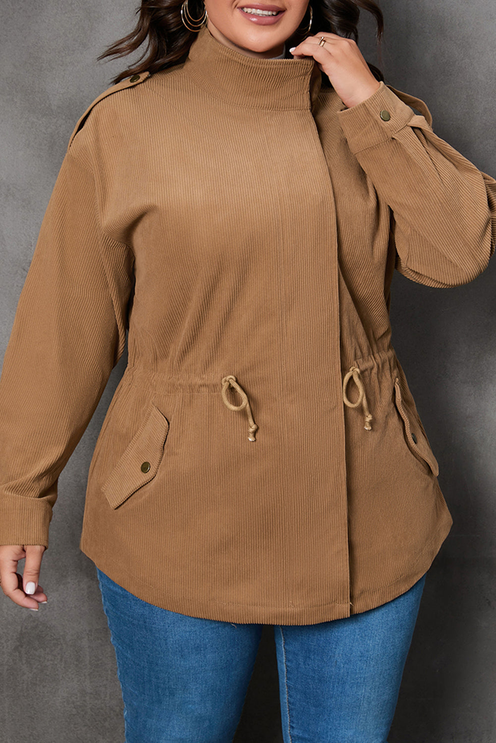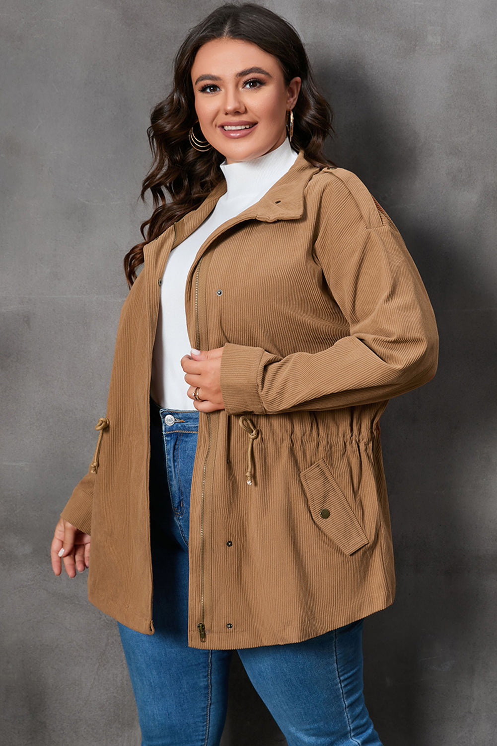 Plus Size Zipper and Snap Down Drawstring Jacket