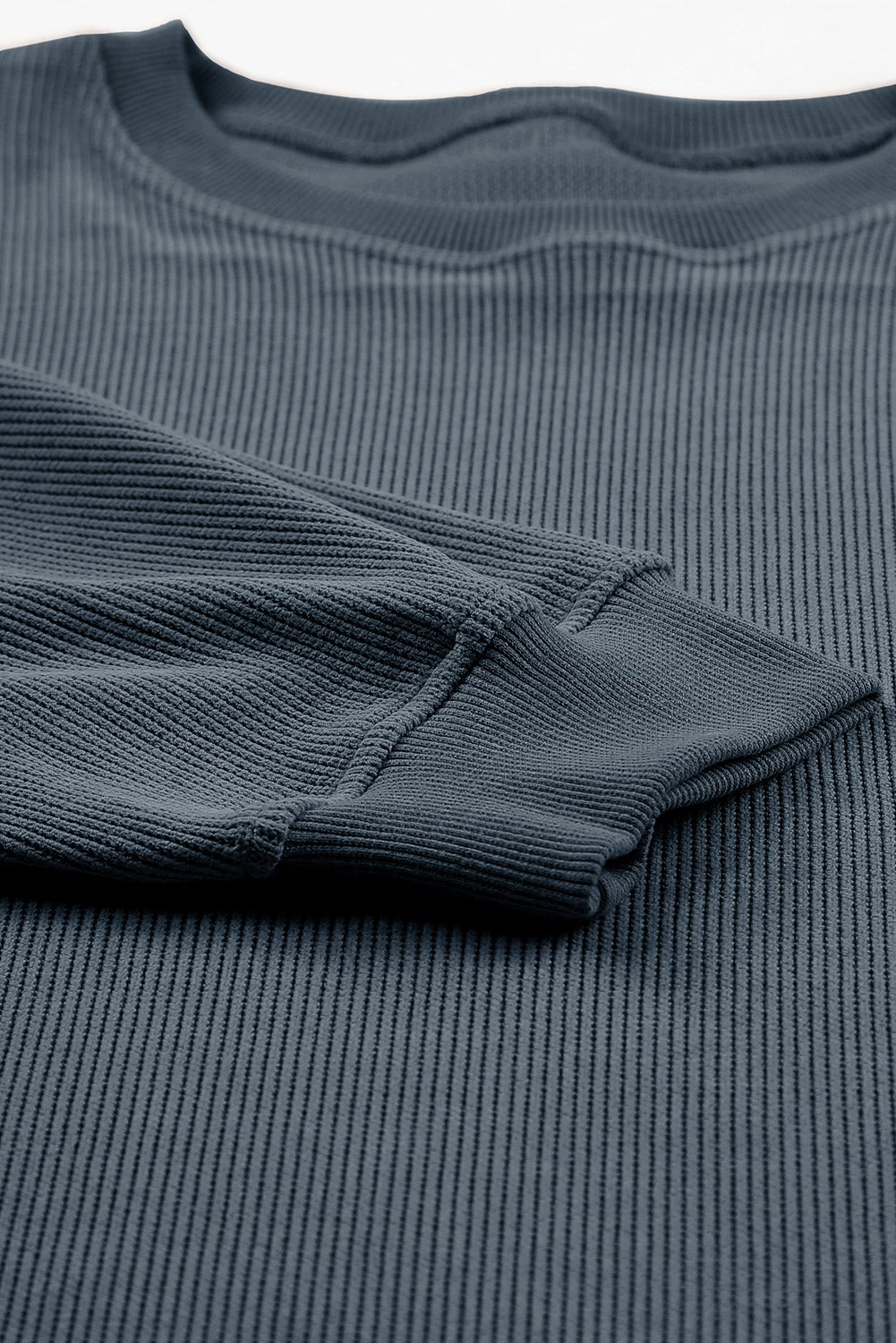 Plus Size Lip Ribbed Round Neck Sweatshirt